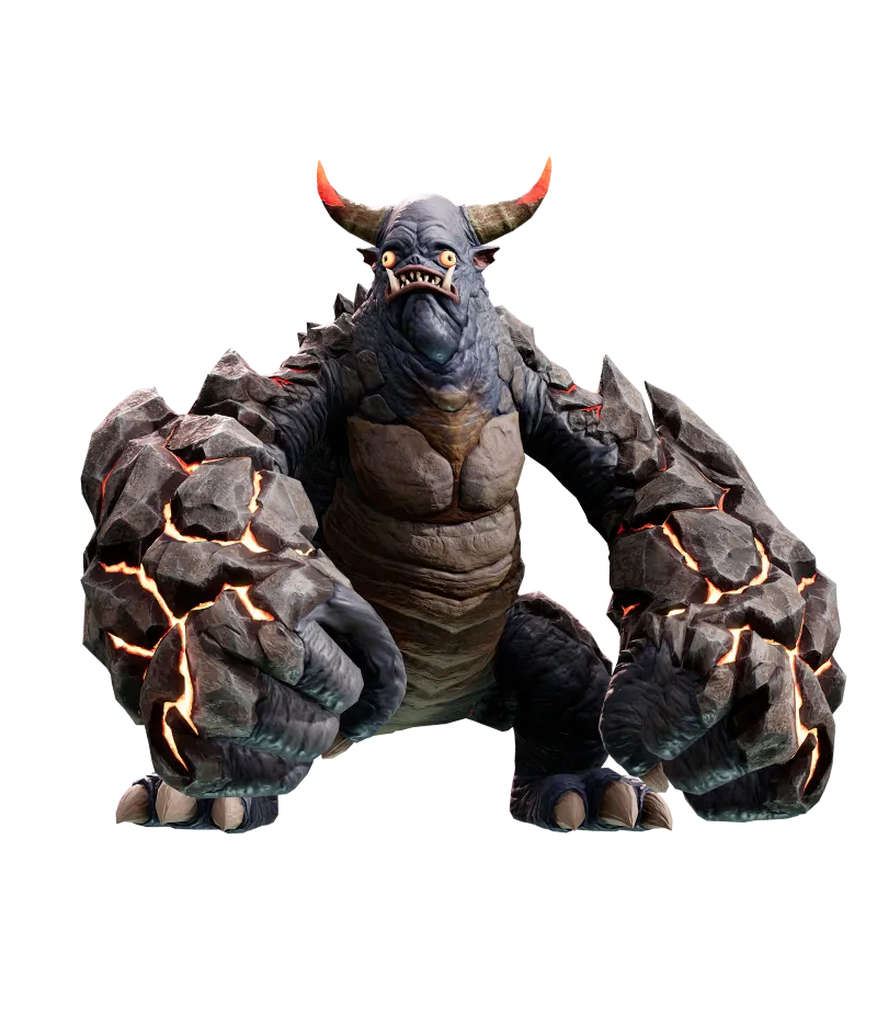 原始の怒りと獣の獰猛さを体現した怪物。どっしりした見た目とは裏腹に獲物に素早く駆け寄って力の限り拳を振り下ろす。