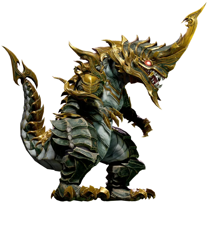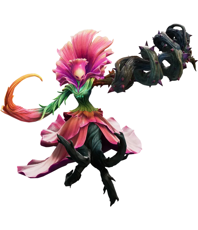 タラバク熱帯雨林に古からの支配者として君臨する大地の怒りの権化。忠誠を誓った臣下たちを指揮しながら自然に抗う者たちへ優雅に復讐の鞭を振るう。